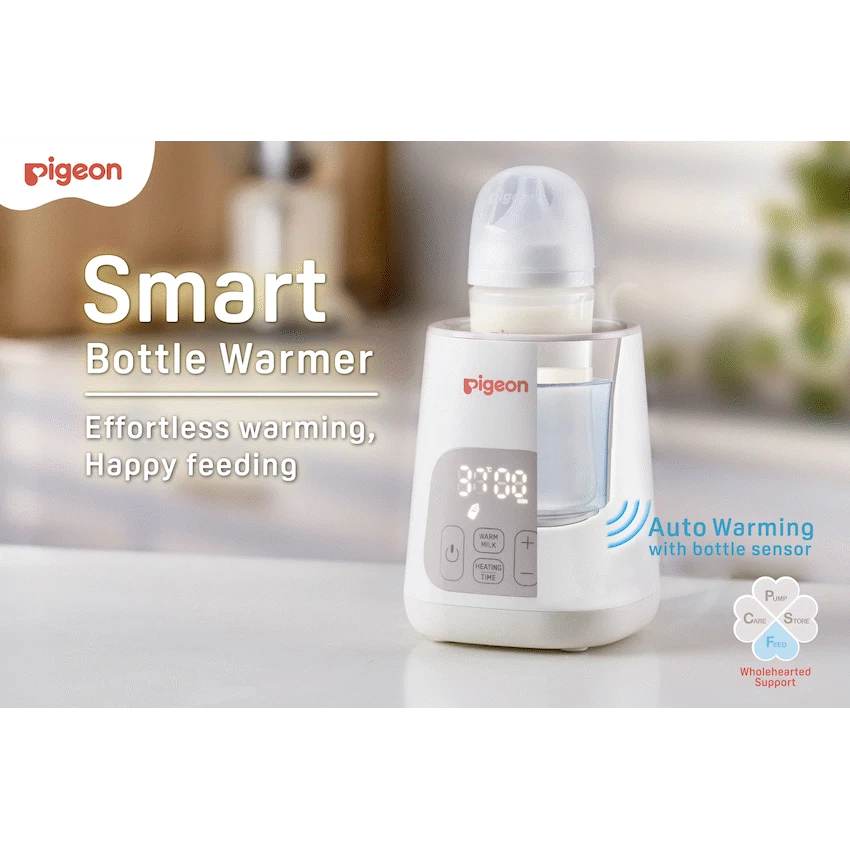 Simplify feeding time with the Smart Bottle Warmer designed for busy parents who want safe, efficient, and stress-free bottle prep. With automatic features and intelligent temperature control, this warmer ensures every bottle is ready when your baby is.Featuring a built-in smart sensor, the warmer automatically starts when a bottle is placed inside and stops when removed, giving you a hands-free experience. With a simple one-touch start, it quickly warms milk to the ideal feeding temperature of 37degC, preserving essential nutrients while eliminating guesswork.A clear countdown timer and sound alert let you know exactly when warming is complete-no need to constantly check or test the milk temperature.Choose between two modes:*Warming Mode gently warms milk for feeding.*Heating Mode allows you to set your preferred temperature and time for warming baby food.Safety is built-in with an intelligent water level sensor and anti-dry heating protection, including a low-water sound alert to ensure safe operation at all times.Compatible with Pigeon bottles, most nursing bottle brands, and breast milk storage bags, this warmer is a perfect fit for every family.