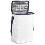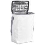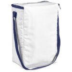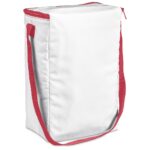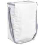 This is a pre-production sample that can be branded with your custom artwork. The sample is intended to allow you to secure an order or for your client to confirm that the design is correct before proceeding with a larger order. This product is manufactured in South Africa upon order and incorporates fabrics printed in full colour. 23 ( l ) x 12 ( w ) cm x 31 ( h ) cm 240g/m2 acrylic coated polyester with aluminium foil lining full branding black webbing strap black zip standard black zip puller main code for bulk orders: CC-HP-9-G pre-printed code: SB-HP-69-G