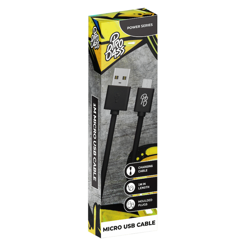 Pro Bass Power Series Boxed Round Micro USB Cable – Black