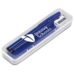 This colourful, attractive and affordable stationery set includes our Pulse Stationary Case ((box-1736), our Scholastic 15cm Ruler (Ruler-3), in a colour of your choice, together with a matching colour Aruba Pen (Pen-1657) and a Brainiac Pencil (Pencil-1287). Please take note that this set is only supplied with matching colour stationery Set is consolidated as a set when branded in-house but supplied as separate items when not branded in-house.