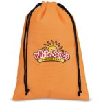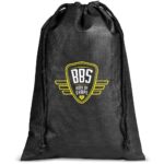 A handy and affordable drawstring pouch for packaging a single gift or a combination of items. 32 ( h ) x 22 ( w ) cm 80g/m2 non-woven polypropylene material with black drawstring closure bulk packed