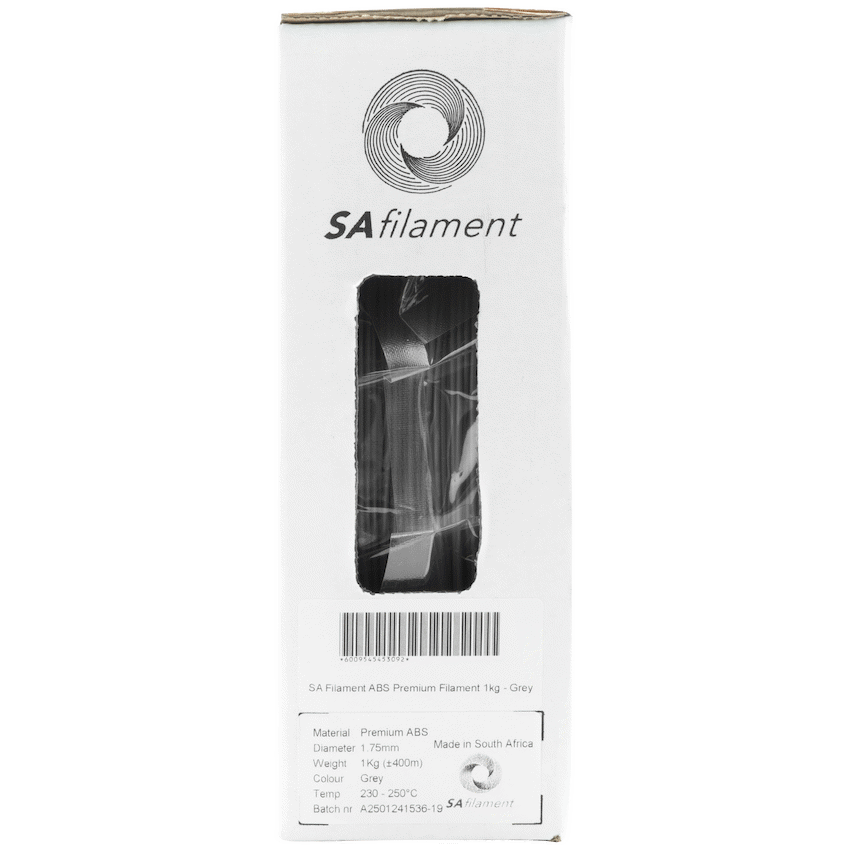 Upgrade your 3D prints with SA Filament Premium ABS – a high-performance, locally engineered filament designed for strength, heat resistance, and consistency. Whether you’re creating functional prototypes, mechanical parts, or aesthetic models, this ABS delivers professional results print after print.Manufactured in South Africa using advanced automation and quality control, each 1.75 mm spool is vacuum-sealed to protect against moisture and preserve quality. With tight diameter tolerances and reliable extrusion, this ABS filament 1 kg roll ensures smooth, accurate printing and dependable performance.Choose SA Filament for a durable, cost-effective solution that puts 3D printing excellence within reach for South African hobbyists and professionals alike.