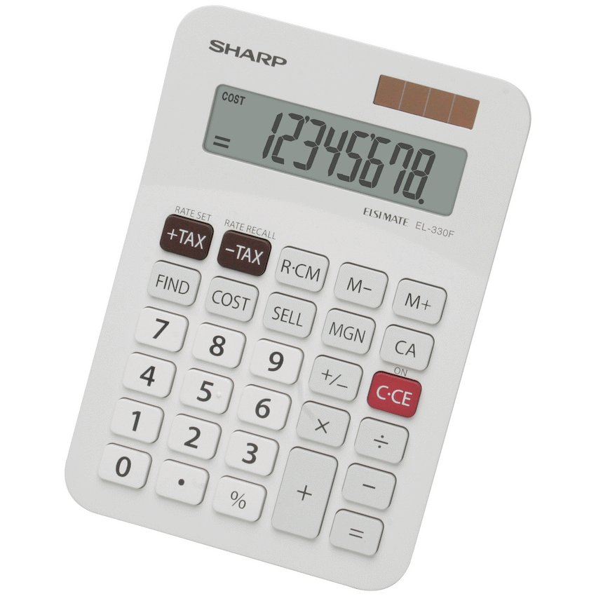 The Sharp EL330F Calculator is a practical and user-friendly desktop calculator designed for everyday business and personal use. It features a large 8-digit tilt display, making numbers easy to read from different angles. Powered by both solar energy and battery backup, it ensures reliable performance in any lighting condition. The calculator comes with convenient functions such as tax calculation and cost/sell/margin keys, perfect for quick business and accounting tasks. It also includes a 3-key memory, percent key, and 3-digit punctuation for clear, accurate input. To help save energy, the auto power-off function switches the calculator off when not in use. Compact, efficient, and reliable, the Sharp EL330F is an excellent choice for both office and home use, combining essential functions with ease of use.