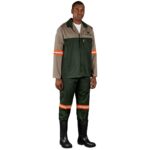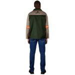 235g/m2 65% polyester, 35% cotton twill front and back contrast yoke • open neck collar • front yoke panel • concealed zip chest pocket features V-flap with press stud closure and pen pocket two side pockets • triple needle top stitching • bar tacks at stress points orange/silver 50mm reflective tape detail on arms locally manufactured YKK Zip day/night visibility