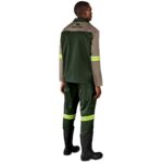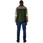 235g/m2 65% polyester, 35% cotton twill front and back contrast yoke • open neck collar • front yoke panel • concealed zip chest pocket features V-flap with press stud closure and pen pocket two side pockets • triple needle top stitching • bar tacks at stress points yellow/silver 50mm reflective tape detail on arms locally manufactured YKK Zip day/night visibility