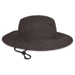 360g/m2 100% cotton canvas unstructured wide brim 8 rows of stitching 2 brass studs adjustable cord with toggle