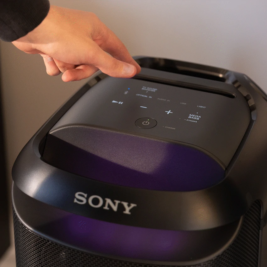 Whether you want to host an epic party or enjoy your favourite movie or TV show, this speaker will give you the experience you need. The XV800 provides a powerful, room-filling sound, whatever you’re listening to and wherever you’re listening from. So, don’t compromise, play music loud and clear or enrich your movies and TV with the XV800.The XV800 speaker is built to party with a loud and clear sound. Aside from being portable enough to easily move around, it also projects sound on all sides, so that your guests will get a great sound experience whether they’re standing in front of it or behind.Whatever you’re watching, you want the very best sound. Thanks to deep bass and room filling sound provided by the TV Sound Booster you’ll get a sound so real you’ll feel like you’ve entered the world on the screen.The XV800 comes complete with a convenient and intuitive touch panel that makes it easier to control your settings. Even better, it lights up so you can stay in control when it gets dark.