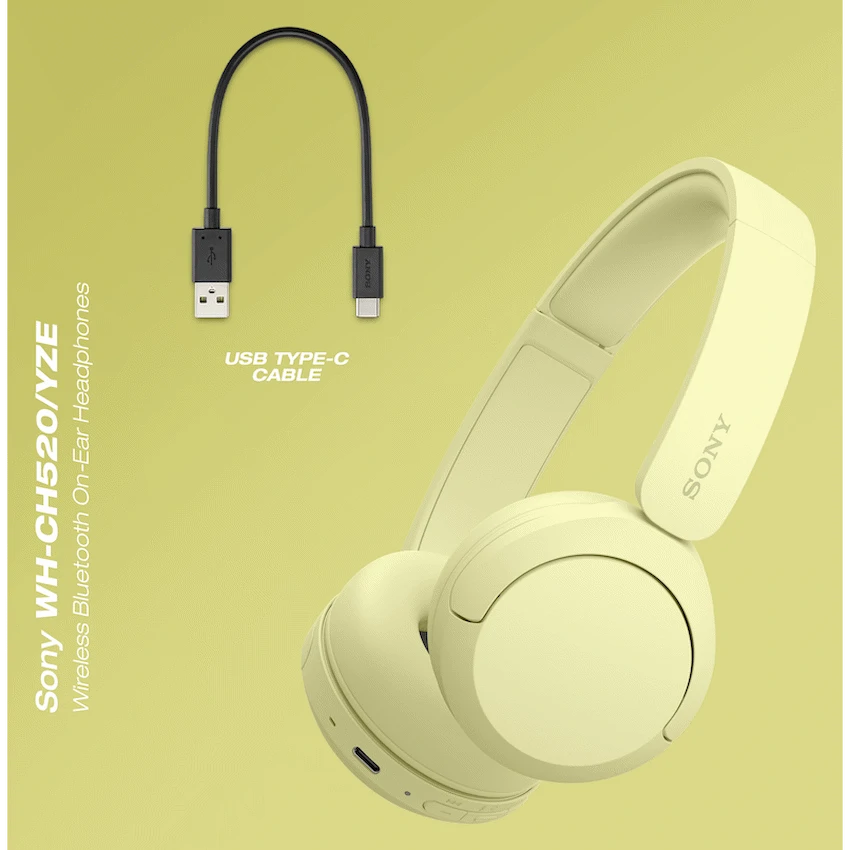 Sony WH-CH520 (Yellow) Bluetooth On-Ear Headphones