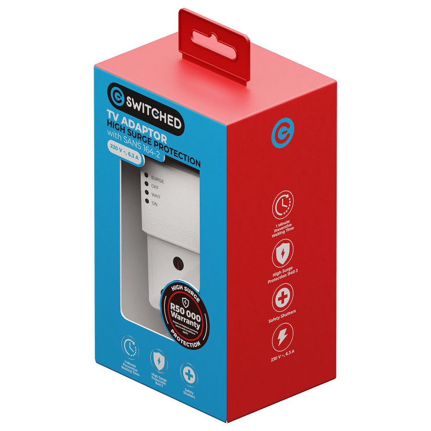 Protect your most valuable electronics with the Switched 1-Way TV Surge Protector Adaptor, specifically designed to guard TVs against damaging power surges and voltage fluctuations. With 1140 Joules of surge protection, over/under voltage control, and a preventive 1-minute delay restart, this plug offers reliable safety during South Africa’s frequent load shedding and lightning storms.Compact yet powerful, the adaptor features a SANS 164-2 socket, ensuring local compatibility for a variety of home electronics. The preventive waiting time function helps protect your devices from residual current spikes by delaying reconnection, a critical feature for sensitive appliances like TVs and entertainment systems.The built-in safety shutters and overload protection make it a must-have for home use, giving you peace of mind with every plug-in. Whether you’re connecting a flat screen, decoder, or soundbar, this Switched surge adaptor is the smart and safe solution.