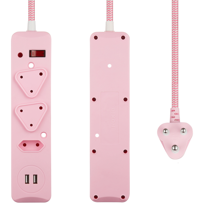 Add safety, functionality, and style to your power setup with the Switched 3-Way Surge Protected Multiplug with Dual USB Ports. Designed for modern living, this USB surge protected multiplug offers the perfect combination of everyday convenience and advanced electrical protection.Equipped with dual 2.4A USB ports, it allows fast and direct charging for smartphones, tablets, and other USB devices-no adapters needed. With 450 J surge protection and an overload reset switch, this surge protection plug with USB ports defends your valuable electronics from voltage spikes and load-shedding surges.The durable 3m braided cable gives you extended reach and tangle-free flexibility, while the vibrant pink finish adds a touch of personality to your space. Whether for your home, office, or vanity setup, this pink power extension delivers both form and function.