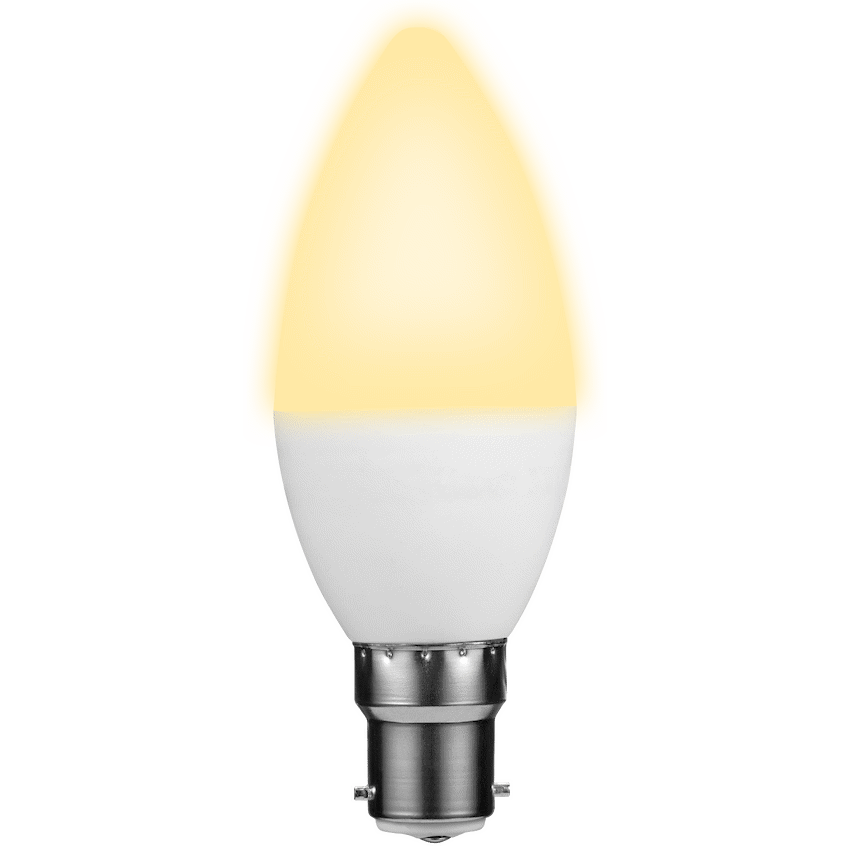 The SWITCHED 5W Candle LED Light Bulb with a B22 bayonet cap provides warm, energy-efficient lighting in a classic C37 candle shape. Its soft Warm White light (3000K) creates a cozy ambiance, perfect for living rooms, bedrooms, and decorative fixtures such as chandeliers.Delivering 470 lumens with just 5 watts of power, this bulb achieves excellent energy efficiency at 94 lumens per watt. It is designed to last up to 15,000 hours, reducing the need for frequent replacements and lowering energy costs.