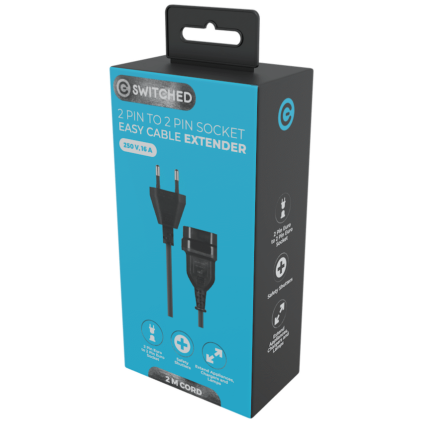 Need more flexibility for your 2-pin appliances? The Switched Easy Cable Extender 2-Pin Euro to 2-Pin Euro Socket is a reliable and practical 2-pin extension cord that helps you power low-draw devices like lamps, fans, and radios with ease. With a 2-metre cable, it offers just the right amount of reach without creating cable clutter.Designed for South African homes and Euro plug compatibility, this Euro plug extension lead is perfect for extending small appliances that use standard 2-pin plugs. Built-in safety shutters provide added protection by preventing accidental contact-making it suitable for homes with kids or pets.Whether you’re setting up in the bedroom, lounge, or office, this cable extender 2-pin to 2-pin gives you the convenience and safety you need in a compact, lightweight form.