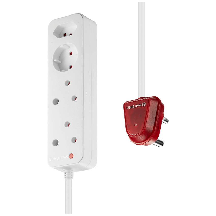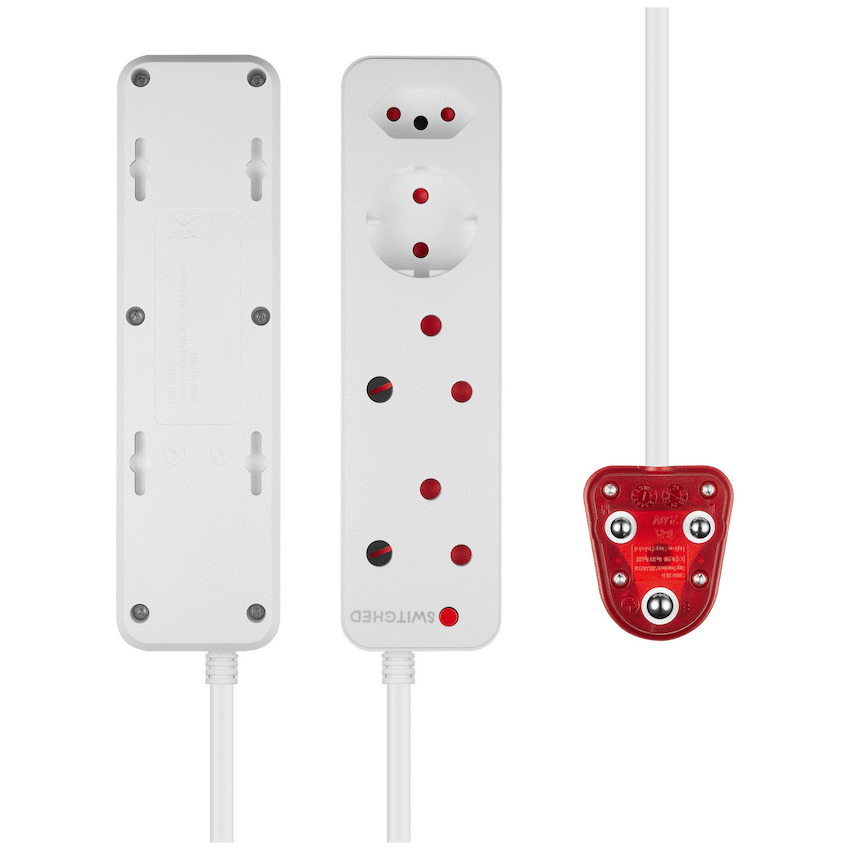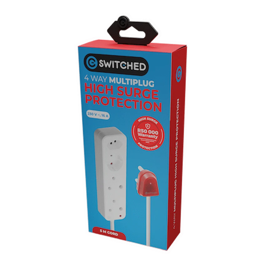 Power and protect your electronics with the Switched High Surge 4-Way Multiplug, a reliable and durable 4-way surge protector multiplug built for South African homes and offices. With 1140 Joules of surge protection, it defends your appliances against power spikes caused by load shedding, lightning, or electrical faults.Designed for convenience and safety, it features overload protection with an easy-reset button and child-safe safety shutters. This multiplug includes a combination of 3-pin, SANS 164-2, and Schuko sockets, supporting a wide range of local and international devices.Thanks to the 5-metre cable, this extension multiplug easily reaches across larger rooms or behind furniture, making it ideal for TVs, workstations, kitchen appliances, and more.