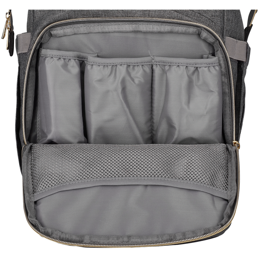 This diaper backpack is the perfect combination of high-quality construction, practical features, and fashion-forward design, making it an essential accessory for modern parents on the go. It comes with a convenient changing mat for quick diaper changes, insulated bottle pockets to keep drinks at the right temperature, and a dedicated wet wipes pocket for easy access. Stroller hooks add hands-free convenience, allowing you to attach the bag securely while out and about. Crafted from durable, premium materials, it is built to withstand daily use while maintaining a stylish, contemporary look. With thoughtfully designed compartments and a sleek silhouette, this backpack keeps all baby essentials organized, accessible, and carried in comfort and style.