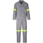 190g/m2 polycotton twill jacket: open neck collar • front yoke panel • concealed zip Monza style chest pocket • two side pockets pants: elasticated back waist • five belt loops • two slanted front pockets • back pocket the suit size is based on the size of the jacket yellow/silver 50mm reflective tape detail on arms, legs, and back day / night visibility The industry norm on this product is for the pants of the set to be approx. 2 sizes smaller than the jacket. This product will therefore be sold based on the jacket size. For example, if you place an order for a size 34, please be aware that the jacket size will be 34 and the pants size will be 30. Kindly ensure that sizing has been established correctly before placing an order with us as sets cannot be broken up and will always be sold as per the above.