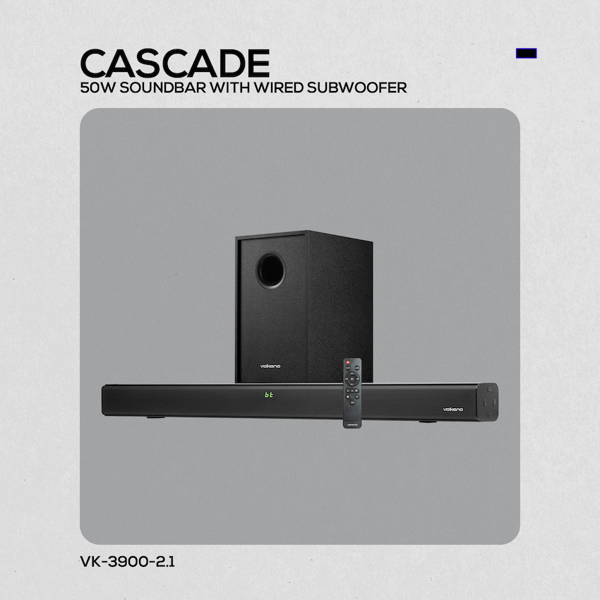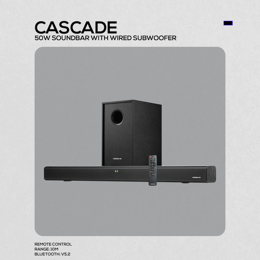 Upgrade your home audio without breaking the bank with the Volkano Cascade Series 50W Bluetooth Soundbar with Wired Subwoofer. Perfect for South Africans seeking an affordable soundbar with subwoofer, this system delivers impressive sound performance for movies, music, and everyday entertainment.With 50W RMS power output and a peak output of 100W, the Cascade system brings your content to life with balanced highs and punchy bass. Whether you’re watching your favourite series or blasting weekend playlists, the wired subwoofer adds depth that built-in TV speakers simply can’t match.Enjoy modern and traditional features in one package – including Bluetooth connectivity, FM radio, USB playback, and a convenient HDMI ARC input for seamless TV connection. Designed with user-friendly controls and a clear LED display, this soundbar offers multiple playback modes including repeat and shuffle when playing from USB.Ideal for first-time soundbar buyers or anyone upgrading on a budget, the Volkano Cascade soundbar delivers real audio value, complete with a remote and multiple input options for easy setup.