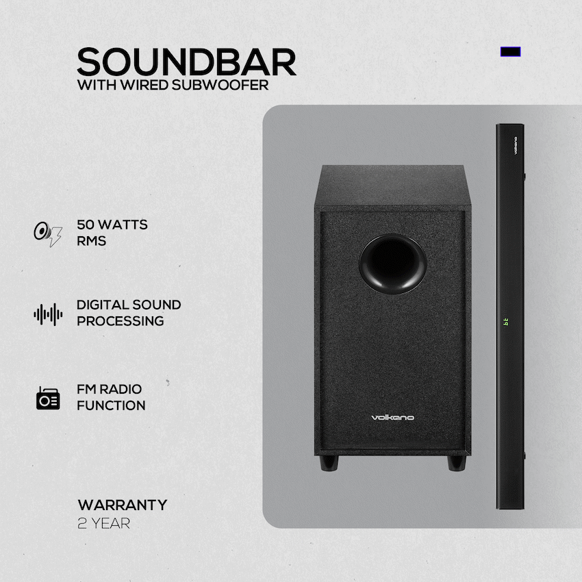 Volkano Cascade 50w Soundbar + Wired Subwoofer – Black