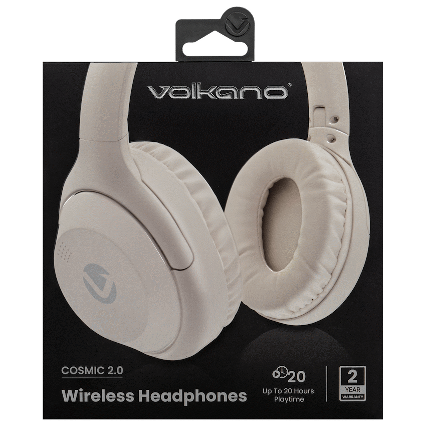 Enjoy powerful sound and vibrant design with the Volkano Cosmic 2 Series Bluetooth Headphones. Designed for all-day comfort and everyday convenience, these Bluetooth headphones deliver immersive audio and essential features for modern living.With up to 35 hours of wireless playtime, you can go longer between charges, whether you’re working, studying, or relaxing. The built-in microphone makes hands-free calling simple, while support for Google and Siri lets you take control using just your voice. Whether you’re catching up on calls or switching playlists, these wireless headphones with a microphone make it effortless.Designed for comfort and portability, they’re ideal for music lovers, students, and everyday listeners alike.Feature Highlights:35-Hour Wireless Playtime – Enjoy long-lasting audio with fewer interruptionsHands-Free Calling – Built-in mic ensures clear voice communicationGoogle & Siri Compatible – Use voice commands for instant control4 EQ Sound Modes – Tailor your listening experience to your preferencesPowerful 40mm Drivers – Crisp sound with deep bass and dynamic clarityTechnical Specifications:Bluetooth Version: V6.0Chipset: Bluetrum Supported Profiles: A2DP, AVDTP, AVRCP, RFCOMM, HFP, HSP, SPP, HIDRange: 10mDriver Size: 40mmImpedance: 32?Frequency Response: 20Hz – 20kHzSensitivity: 105dBBattery: 350mAhCharging Port: USB-CCharging Time: 3.5 HoursPlaytime: 35 Hours (50% volume), 32 Hours (100% volume)Charging Input: DC 5VWhat’s in the Box:Volkano Cosmic 2 Series Bluetooth HeadphoneUSB-C Charging CableAux CableInstruction ManualExperience bold sound -designed to keep up with your lifestyle.