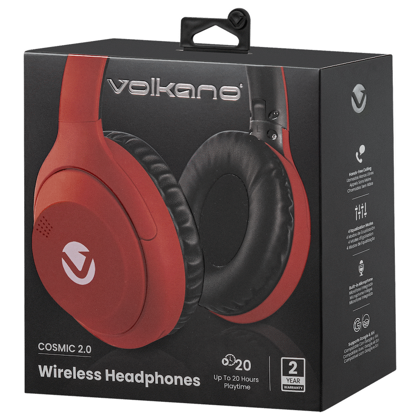 Enjoy powerful sound and vibrant design with the Volkano Cosmic 2 Series Bluetooth Headphones. Designed for all-day comfort and everyday convenience, these Bluetooth headphones deliver immersive audio and essential features for modern living.With up to 35 hours of wireless playtime, you can go longer between charges, whether you’re working, studying, or relaxing. The built-in microphone makes hands-free calling simple, while support for Google and Siri lets you take control using just your voice. Whether you’re catching up on calls or switching playlists, these wireless headphones with a microphone make it effortless.Designed for comfort and portability, they’re ideal for music lovers, students, and everyday listeners alike.Feature Highlights:35-Hour Wireless Playtime – Enjoy long-lasting audio with fewer interruptionsHands-Free Calling – Built-in mic ensures clear voice communicationGoogle & Siri Compatible – Use voice commands for instant control4 EQ Sound Modes – Tailor your listening experience to your preferencesPowerful 40mm Drivers – Crisp sound with deep bass and dynamic clarityTechnical Specifications:Bluetooth Version: V6.0Chipset: Bluetrum Supported Profiles: A2DP, AVDTP, AVRCP, RFCOMM, HFP, HSP, SPP, HIDRange: 10mDriver Size: 40mmImpedance: 32?Frequency Response: 20Hz – 20kHzSensitivity: 105dBBattery: 350mAhCharging Port: USB-CCharging Time: 3.5 HoursPlaytime: 35 Hours (50% volume), 32 Hours (100% volume)Charging Input: DC 5VWhat’s in the Box:Volkano Cosmic 2 Series Bluetooth HeadphoneUSB-C Charging CableAux CableInstruction ManualExperience bold sound -designed to keep up with your lifestyle.