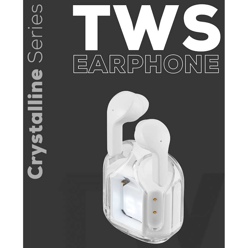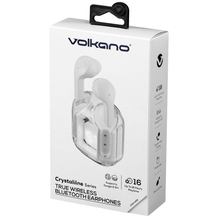 Volkano Crystalline Series TWS Earphone – White, Hardbox