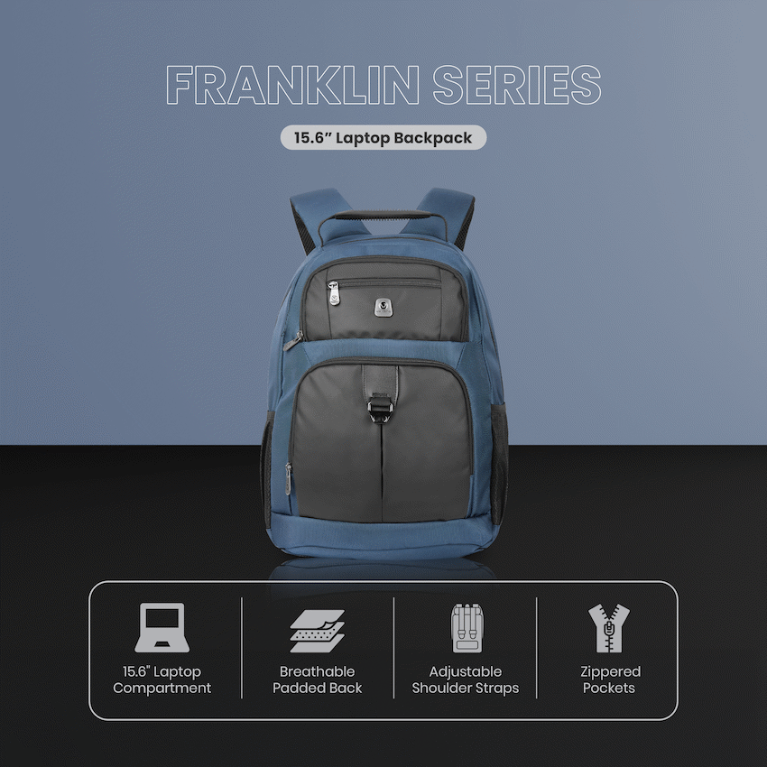 A high-quality laptop backpack with a padded compartment that fits laptops up to 15.6″. Multiple internal and external pockets provide ample storage for organizing chargers, cables, power banks, keys, wallets, water bottles, notebooks, documents, and other daily essentials. Made with durable, water-resistant materials and reinforced stitching for long-lasting use. Features adjustable padded shoulder straps, breathable back padding, a top handle for carrying, side handles for easy lift, and a secure zipper closure for added protection during travel or daily use
