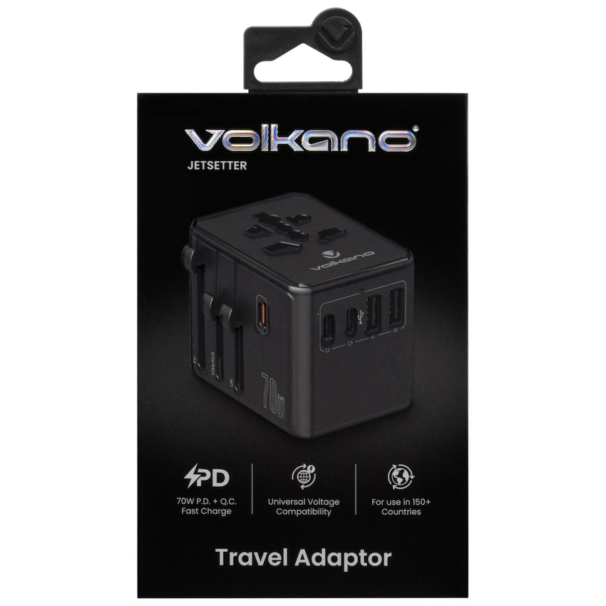 Travel smarter with this universal travel adapter designed for International travellers or powering multiple devices at home and the office. With 3 AC sockets plus 5 USB ports (3x USB-C and 2x USB-A), you can charge phones, tablets, and more from a single wall outlet. The 70W GaN USB-C1 port delivers efficient fast charging while keeping heat and size to a minimum, and Smart IC intelligently allocates power for safe, reliable performance. Integrated plug sliders cover USA, UK, EU, and AUS standards, enabling use in 150+ countries. A replaceable 10A overload fuse and LED power indicator add peace of mind. Compact and portable, it’s the all-in-one travel adapter with USB you’ll reach for daily.