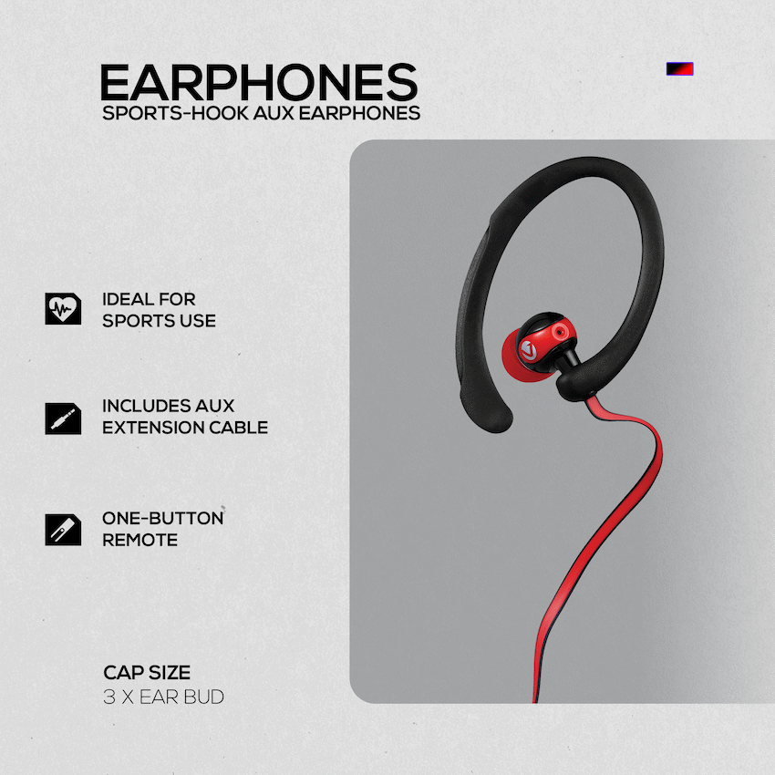 Volkano Sports Earphones Black/Red