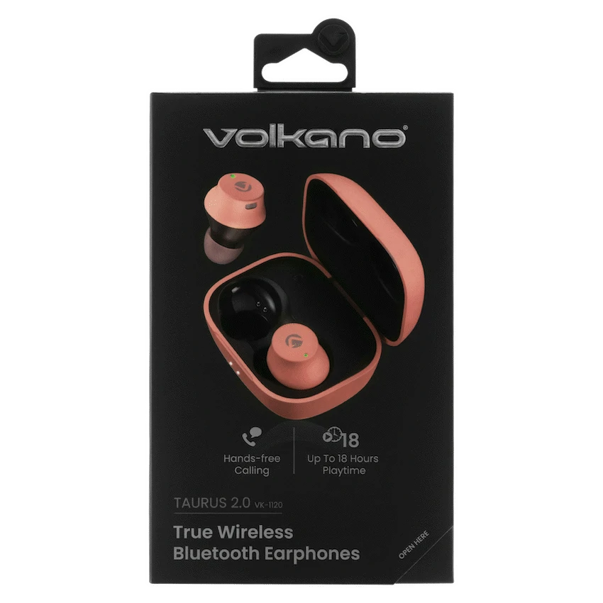 Experience the pinnacle of audio excellence with the Volkano Taurus Series 2.0 True Wireless Earphones in a stylish Pink hue. These earbuds redefine convenience and style, offering a range of features tailored for an elevated audio experience.Elevate your audio experience with the Volkano Taurus 2.0 True Wireless Earbuds, where crystal clear sound meets stylish functionality. With Bluetooth 5.2 technology, extended playback, and a water-resistant design, these earbuds redefine convenience and style. The portable charging case ensures you stay powered up throughout the day, allowing you to embrace a wire-free world with Volkano Taurus 2.0 True Wireless Earbuds.Crystal Clear Sound:Indulge in high-fidelity audio powered by 6mm drivers and cutting-edge Bluetooth 5.2 technology, ensuring every note is delivered with precision.True Wireless Freedom:Escape the hassle of tangled wires and revel in the true wireless freedom that the Taurus Series 2.0 earbuds provide.Extended Playback:Enjoy up to 7 hours of continuous music on a single charge, allowing you to immerse yourself in your favorite tunes without interruption.Quick Charging:With only 1.5 hours needed to fully charge the earbuds, stay effortlessly connected throughout your day.Reliable Connectivity:Benefit from stable connectivity within a 10-meter range, courtesy of Bluetooth 5.2 technology.Water-Resistant Design:The IPX4 rating safeguards your earbuds from sweat and light rain, ensuring durability during your active lifestyle.Portable Charging Case:Stay powered up on the go with the 470mAh charging case, providing 3.5 additional charges for extended usage.Comfortable Fit:Designed for enduring comfort during extended listening sessions, the Taurus Series 2.0 earbuds prioritize your enjoyment.Easy Setup:Experience hassle-free pairing with your devices, enabling instant use and seamless connectivity.Stylish and Sleek:Blending functionality with style, the Volkano Taurus Series 2.0 earbuds make a statement with their sleek and fashionable design.Specifications:Bluetooth Version: 5.2Chipset: BTBluetooth Distance: 10mSensitivity: 96dBDriver: 6 mmFrequency Response: 20 Hz – 20 kHzBattery Capacity: 40mAh (earbuds) / 470mAh (charging case)Impedance: 32 OhmCharging Time: 1.5 hoursPlayback Time: Up to 7 hoursCharging Input: 5V DC / 1AIPX Rating: IPX4 (water-resistant)Number of Recharges: 3.5What’s in the box1 x Volkano Pisces 2.0 Series TWS Earphones and Charging Case1 x Charging Cable1 x Instruction Manual3 x Eartips