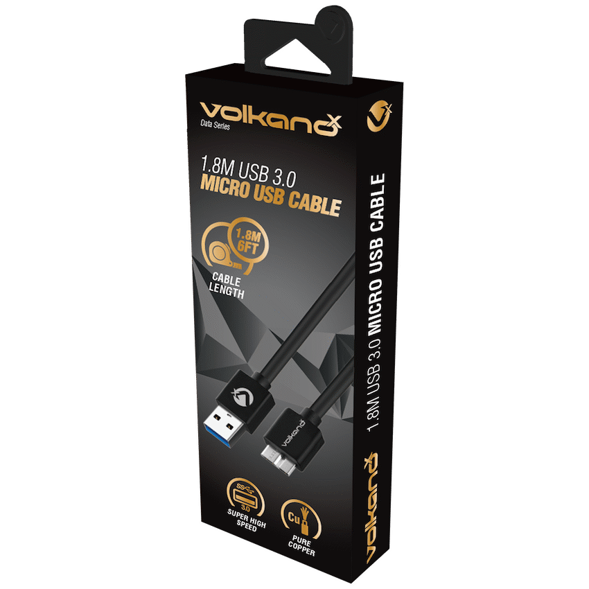 Experience fast, dependable connectivity with the VolkanoX Data Series USB 3.0 Micro USB Cable 1.8 m. This cable delivers lightning-fast SuperSpeed USB 3.0 performance at up to 5 Gbps, making it the ideal choice for transferring large files, connecting external drives, or syncing high-performance devices using Micro-B connectors.Built with a high-quality pure copper conductor, it ensures consistent signal integrity and durability. The 1.8 metre length gives you flexibility-whether you’re working on your desk, charging from a distance, or using it on the go. Plus, it supports efficient charging up to 2 A at 5 V, so you can power your devices quickly and safely.