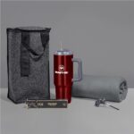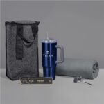 Indulge in the serene beauty of winter with the Arctic Aura hamper, where sophistication meets warmth. A premium gift for those who appreciate luxury and practicality, making winter moments unforgettable. The Yatta range of hampers is expertly crafted to provide a delightful experience with a curated selection of premium items and edible treats. The contents are elegantly presented in a durable Dark Grey RPET felt tall cooler bag. Felt bag size: 19 ( l ) x 12 ( w ) x 35 ( h ) cm The hamper contains: Cuddle Fleece Blanket (GIFT-9444-BL) Kooshty Big Kahuna Luxe Stainless Steel Vacuum Mug – 1.2 Litre (DR-KS-280-B) Yatta African Sucker 1701 100g Nougat Bar Disclaimer Lead times for consumables may take between 20 – 28 days to replenish. Please contact your Account Manager if the quantity you need exceeds current stock availability.