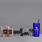 Brighten up a day with the Cheerful Choices hamper. The hamper brings a splash of fun and a sprinkle of sweetness to everyday life. It is the ideal way to celebrate, refresh, and indulge! The Yatta range of hampers is expertly crafted to provide a delightful experience with a curated selection of premium items and edible treats. The edibles are elegantly presented in a Yatta drawstring bag, and this hamper is further encased in a premium grey gift box. Box: 34.5 ( l ) x 9 ( w ) x 9 ( h ) cm Elegantly tied with a black YATTA ribbon The hamper contains: Altitude Daytona 2-in-1 Double-Wall Tumbler- 600ml (DR-AL-246-B) Yatta African Sucker Yatta Rainbow Drops Yatta Wine Gums Disclaimer Lead times for consumables may take between 20 – 28 days to replenish. Please contact your Account Manager if the quantity you need exceeds current stock availability.