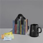 The Yatta Chirpy Charm hamper is a little gift with a lot of heart. Packed in a colourful, reusable mini felt gift bag, it is a sweet moment of delight, wrapped with charm. The Yatta range of hampers is expertly crafted to provide a delightful experience with a curated selection of premium items and edible treats. The contents are elegantly presented in a Yatta sublimated RPET felt mini gift bag. Felt Bag size: 13 ( l ) x 13 ( w ) x 14 ( h ) cm The hamper contains: Serendipio Dorset Ceramic Coffee Mug – 400ml (DR-SD-281-B) 4 x 1701 biscuits Disclaimer Lead times for consumables may take between 20 – 28 days to replenish. Please contact your Account Manager if the quantity you need exceeds current stock availability.