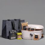 The Elegant Escape hamper is a sophisticated blend of style and luxury designed for the trendy adventurer. Elevate your adventures with a hamper that ensures you enjoy the great outdoors with unmatched elegance and flair. The Yatta range of hampers is expertly crafted to provide a delightful experience with a curated selection of premium items and edible treats. Elegantly presented in a luxury Serendipio Marina 12-Litre Cooler Box.  This hamper is further encased in a large size durable Dark Grey RPET felt gift bag.  Felt Bag: 40 ( l ) x 20  ( w )  x 33 ( h ) cm The hamper contains: Serendipio Marina 12-Litre Cooler Box (GP-SD-35-B) Yatta African Sucker  1701 160g Nougat Box  1701 200g Biscuits  Yatta Caramel Popcorn  Yatta 100g Caramelised Nuts  Yatta 100g Dried Mango  Yatta 100g Raw Mixed Nuts  Disclaimer Lead times for consumables may take between 20 – 28 days to replenish. Please contact your Account Manager if the quantity you need exceeds current stock availability.